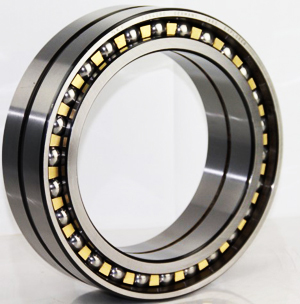 Large double row angular contact ball bearings were originally designed for the axial location of the rolls of finishing mills and wire rolling mills which are supported in cylindrical roller bearings. They are eminently suitable for the high speeds and relatively small axial forces encountered in these applications, but are also suitable for other applications, for example in heavy engineering, where shafts rotating at high speeds require radial support and have to be located axially with a small play.
